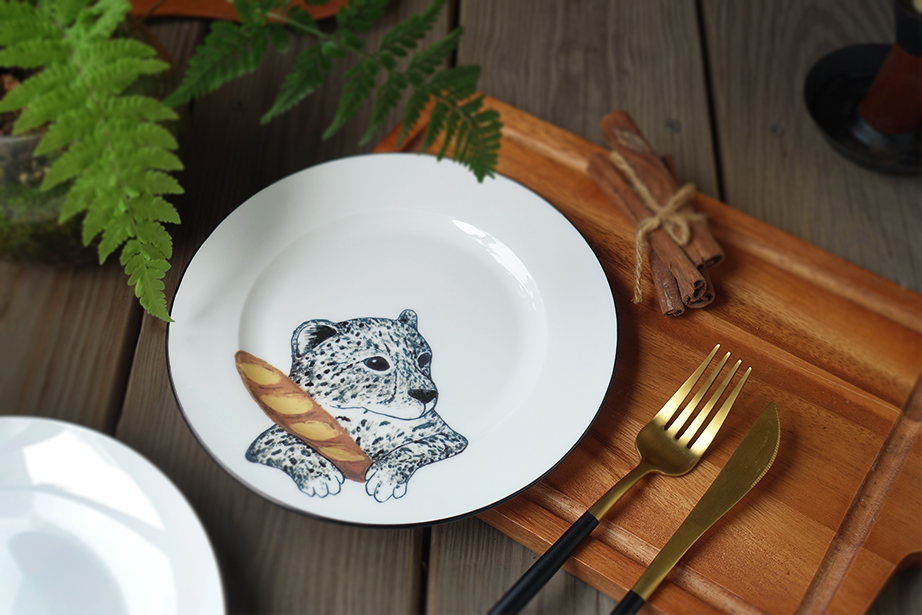 Cheetah Brad - 長棍麵豹 經典黑邊骨瓷餐盤