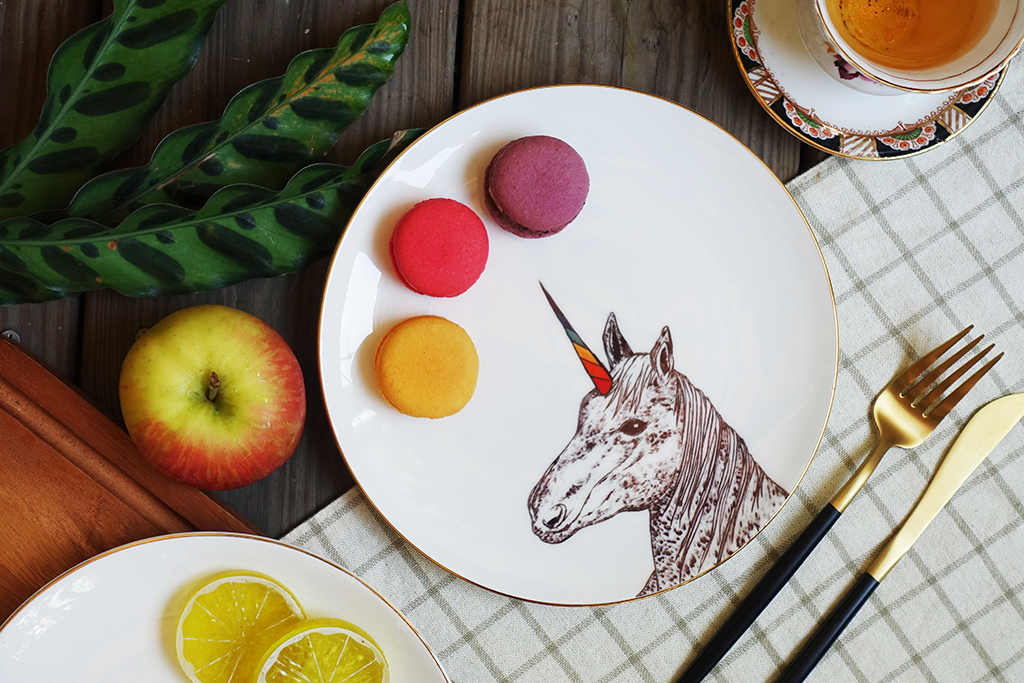 Unicorn 彩虹獨角獸 - 金邊骨瓷餐盤