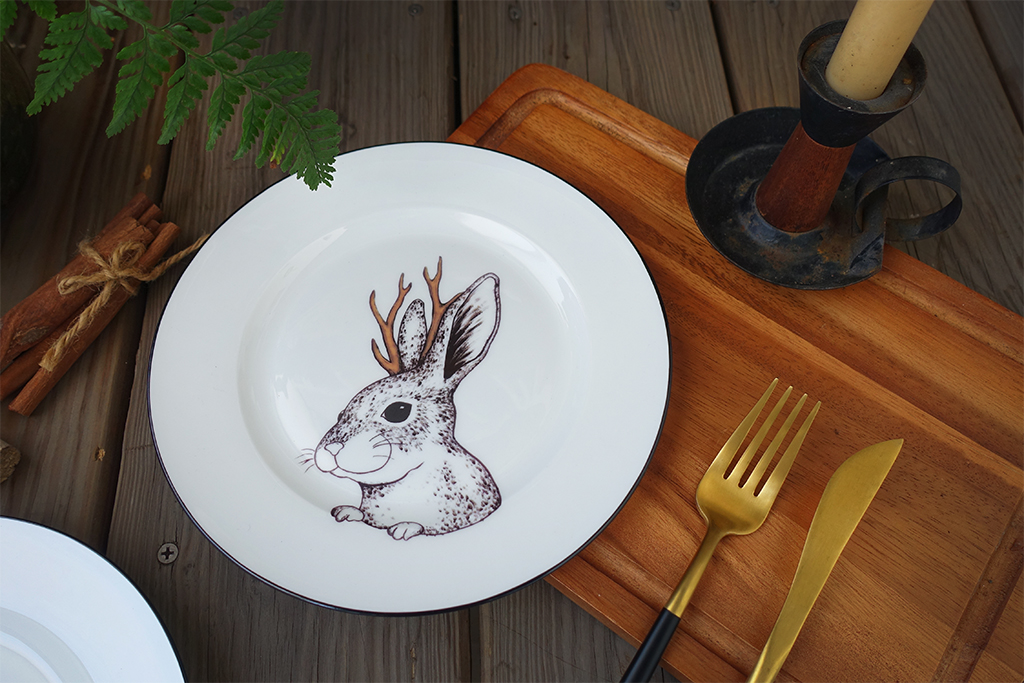Jacklope - 鹿角兔 經典黑邊骨瓷餐盤